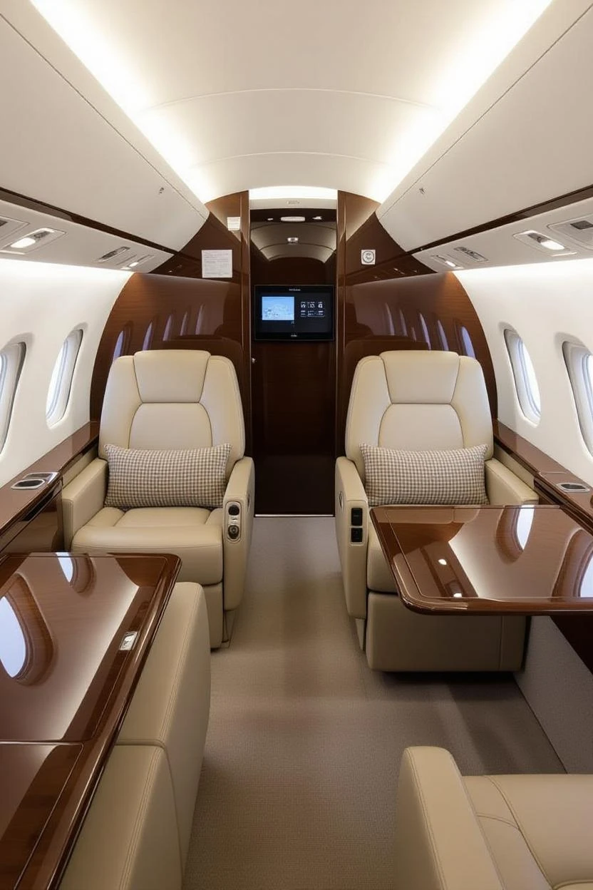 Since passengers spend more time on these long range jets, they are equipped with the most comfortable interiors and the most advanced, up-to-date on-board technologies. Multi-media and business facilities are standard, as well as space for custom seating configurations, with bedrooms for overnight flights, and/or conference table & seats for business flights.